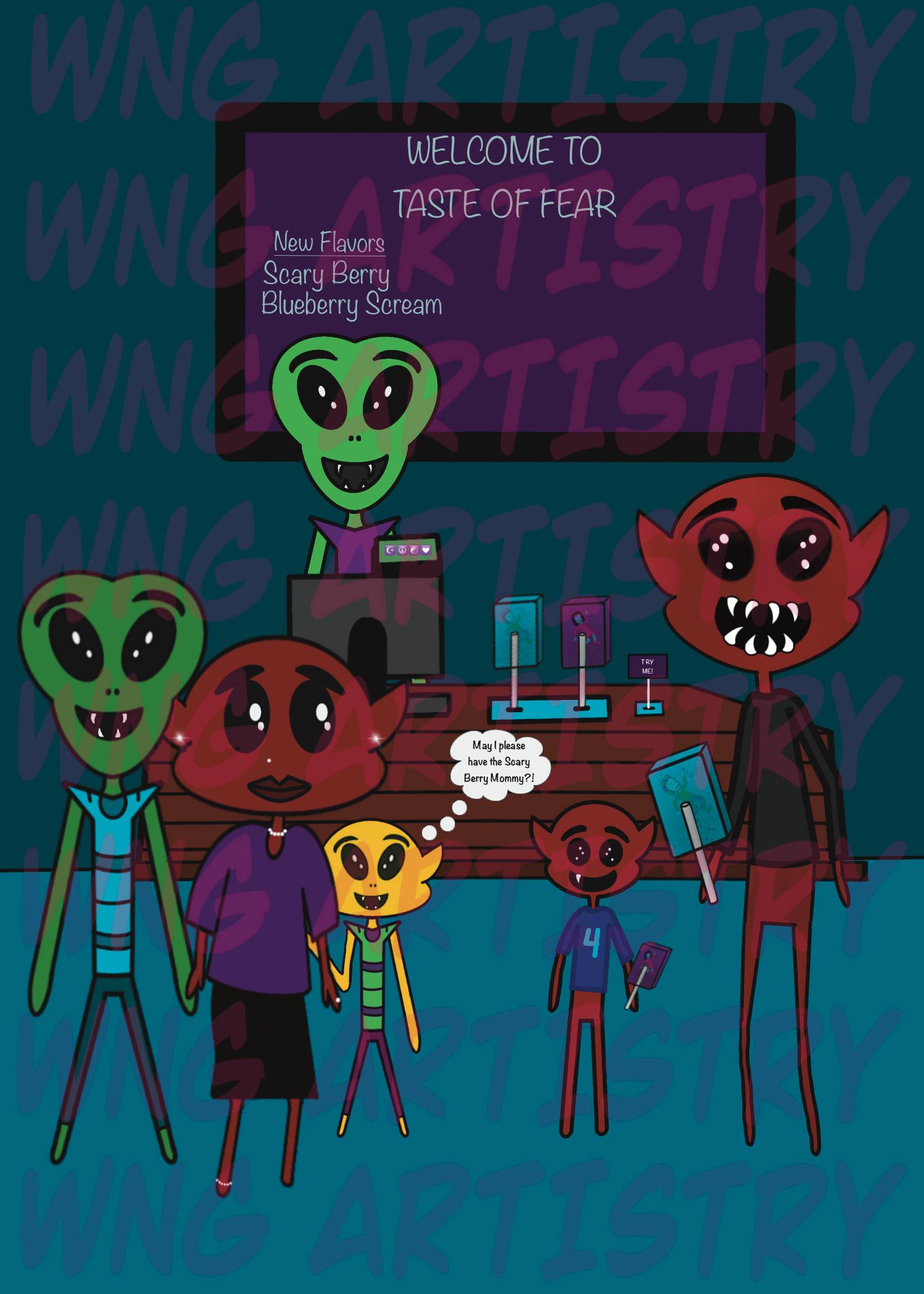 Started drawing at an early age and realized how much I loved creating wacky characters! As I progressed as an artist, I was able to find a way to merge my love for horror with cartoons. I am proficient in Procreate software and I love doing a lot of hand drawn art.